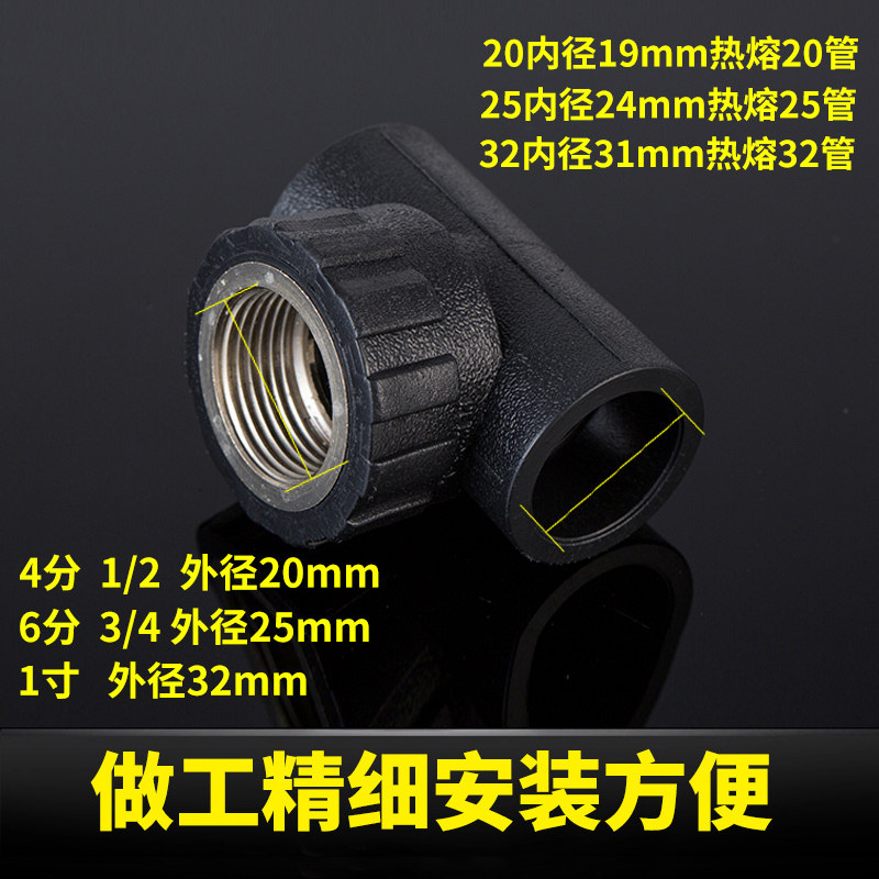 PE pipe fittings inner wire tee 20 25 32 black hot melt pe pipe water supply pipe fittings tap water inner grain tee