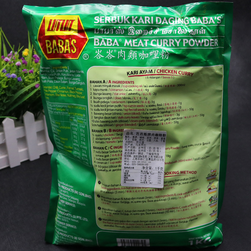 Malaysia original import Babas Baba meat curry powder 1kg Babas meat curry powder