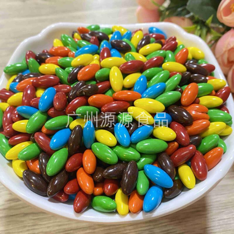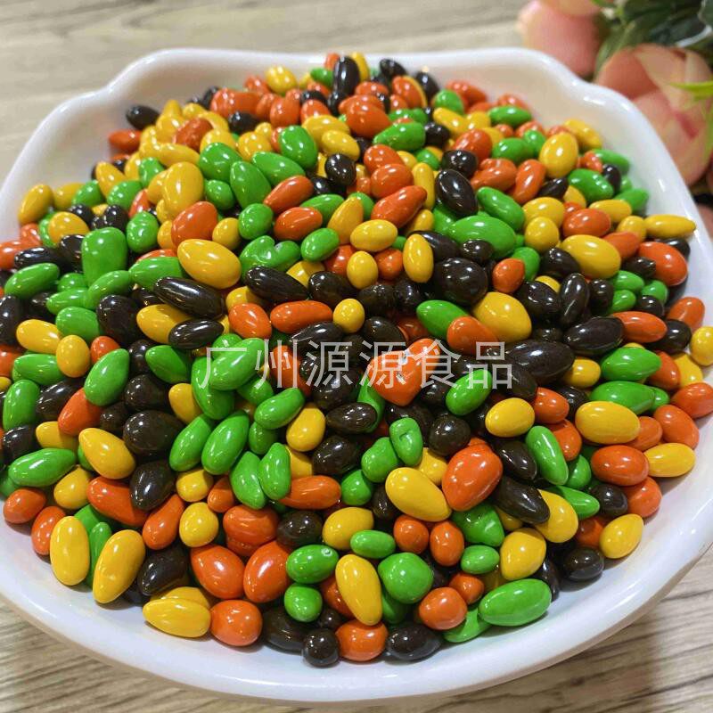 Bulk colorful cocoa butter substitute chocolate colored jelly beans baked jelly beans rainbow decoration candy snacks