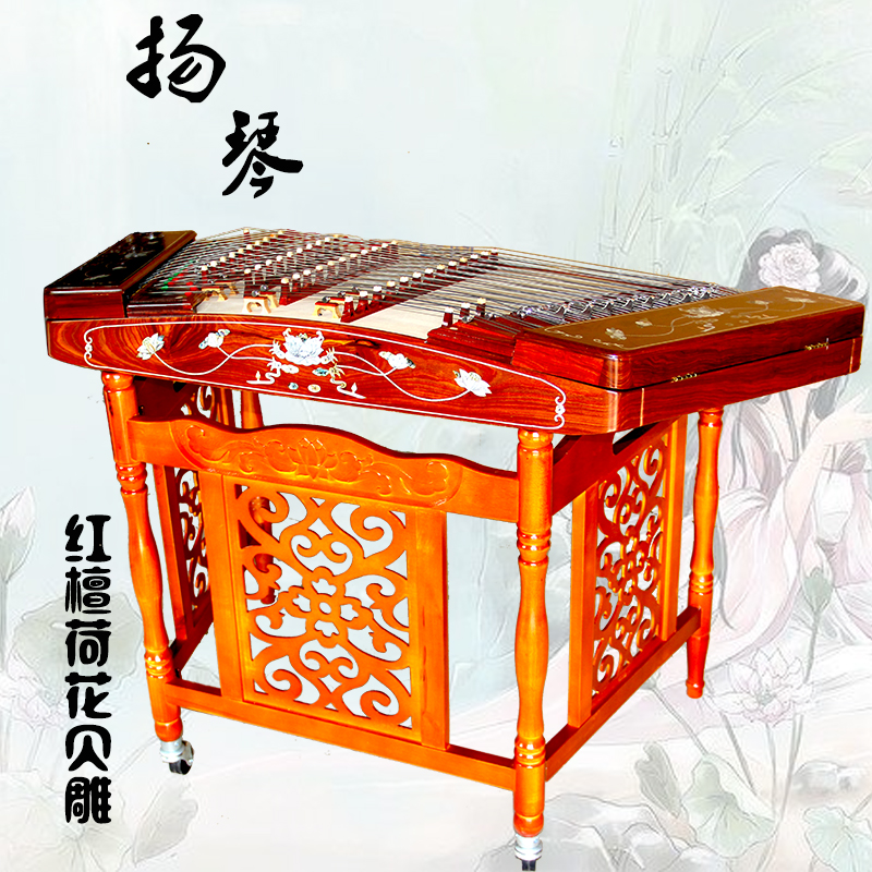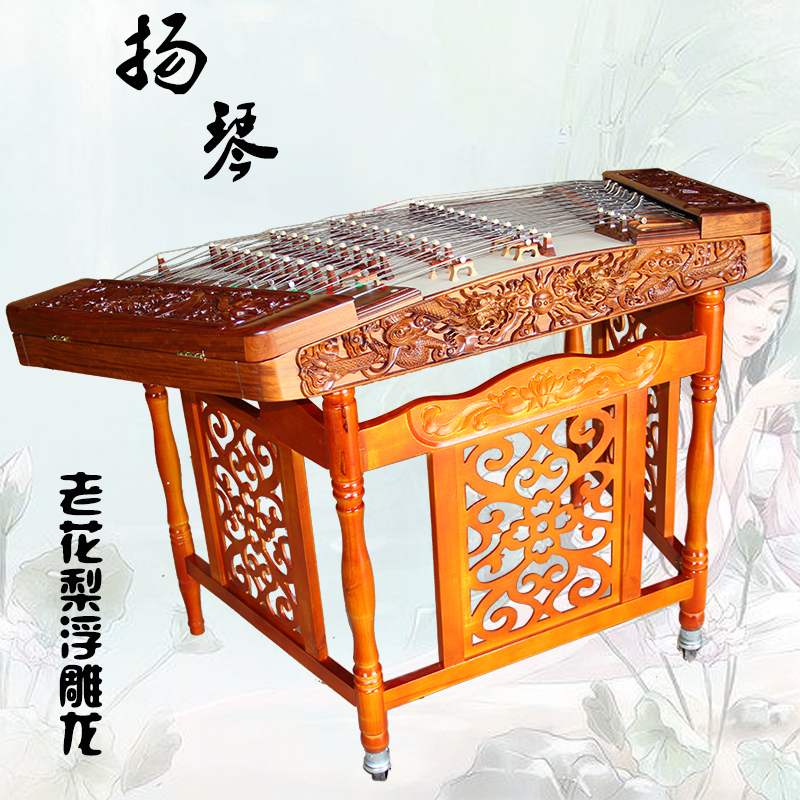 Red Wood Yangqin National Musical Instrument Professional Flower Pear Bay Sculpture 402 Yangqin Dragon Pattern Red Wood Yangqin Bay Sculpture Dragon Yangqin-Taobao