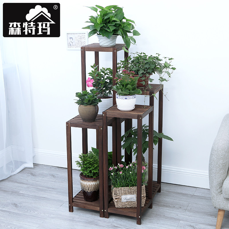 Solid Wood Quality Flower Shelf Balcony Living Room Indoor Multilayer Flower Pots Shelf Floor Single Multi Meat Chandelia Gold Glace Shelf
