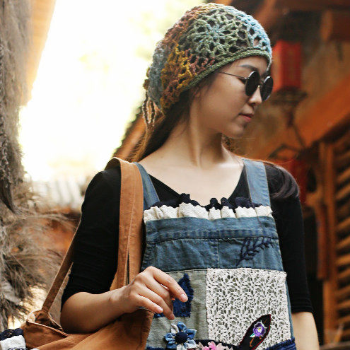Ripples ~ original literature and art Fan retro pure handmade hollowed-out hook flower dual-use spring and summer female hat neck