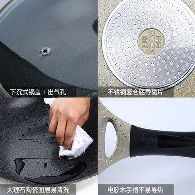 Music Buckle Lotte buckle marble ceramic No oil smoke Smoke Free Pan Flat Frying Pan Saucepan Gas induction cookers