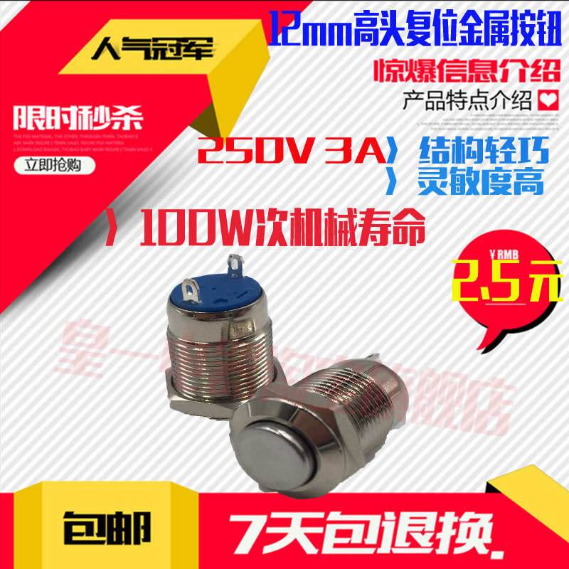 12MM metal button 2 feet reset the flat head high head waterproof power start button balance car toy car special