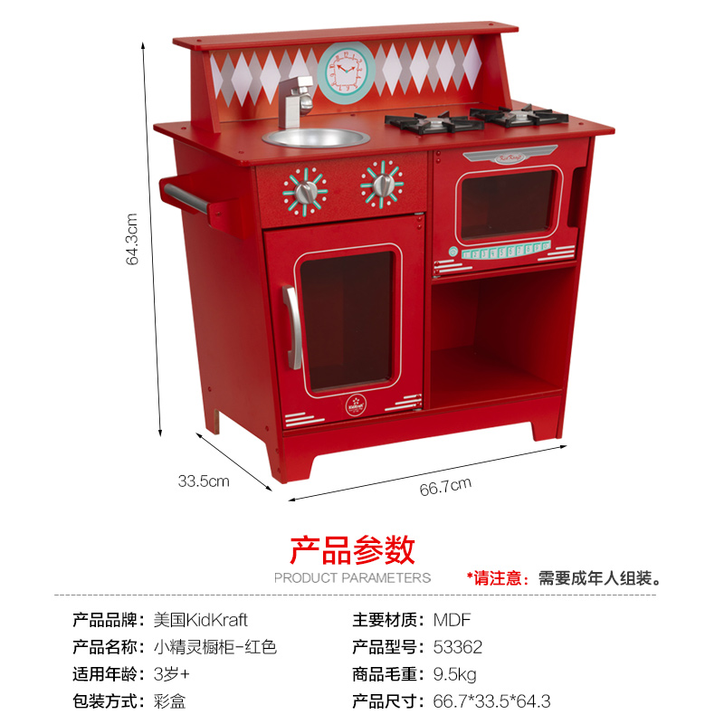 American KidKraft house kitchen toy elf cabinet baby cooking 3-4-5 years old boys and girls