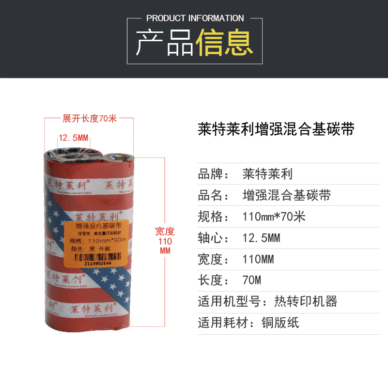 Enhanced Hybrid Ribbon Roll 110X70M 110x90m GK888t 214 314 1105 Q8 Barcode Printer Label Paper Ribbon Ribbon 12.7mm Dual Shaft Small Tube Core Scratch Resistant L42
