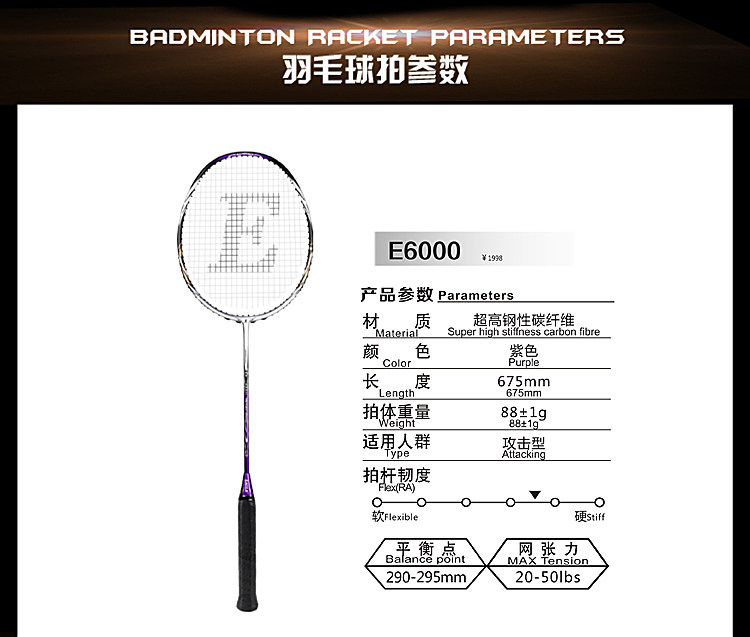 Eagle brand professional carbon fiber professional master high-end racket E6000 viper professional high resistance high value