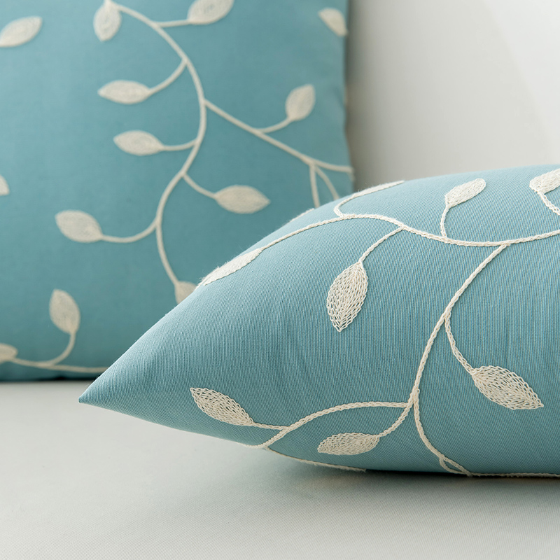 Embroidered blue vines leaf hug pillow embroidered with green vines and leaves to hold pillows
