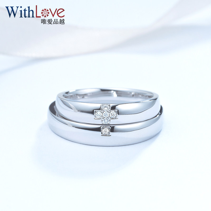 WithLove 18K gold Wedding diamond pair ring Cross couples ring Declaration of happiness