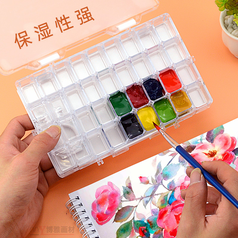 Transparent moisturizing watercolor paint empty box 36 grid water powder acrylic storage palette small sub-packing empty box 24 colors