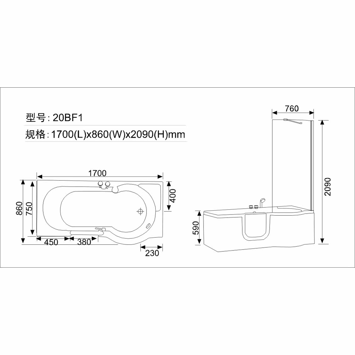 1 7m glass screen shower room door open curved bathtub door massage acrylic shower two-piece water blocking