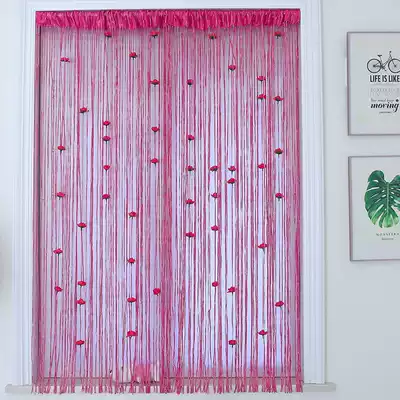 Rose curtain finished silver wire thick bedroom door curtain festival high wedding Korean decorative curtain tassel curtain tassel curtain