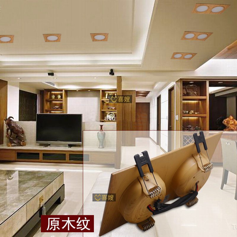 Chinese style double head downlight LED grille suspended ceiling ceiling light double eye embedded drilling living room aisle bold light