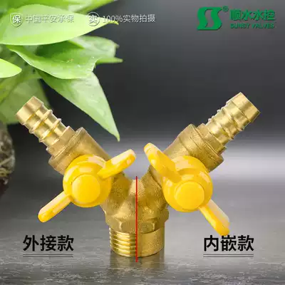 All copper thickened gas valve three-way valve 4 points inner wire outer wire double nozzle valve copper rod copper rod copper core gas switch