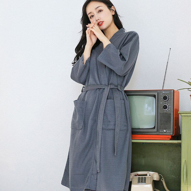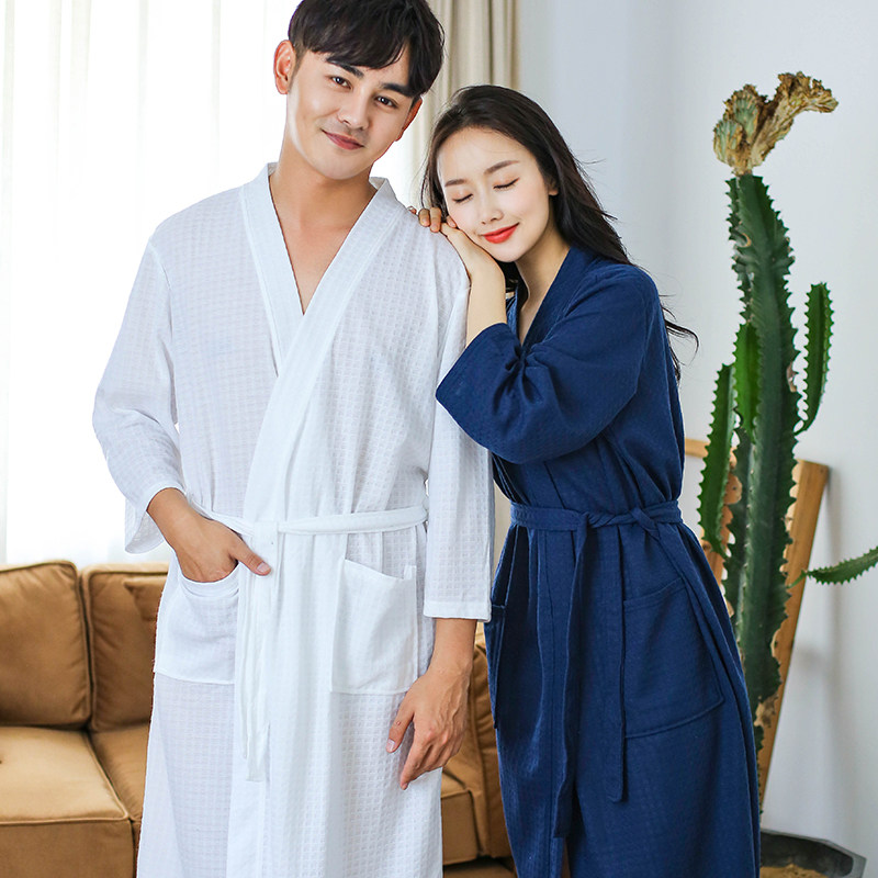 Summer thin bathrobe couple a pair of sleeping robes men's long version of the water suction speed dry bath clothes spring and autumn pyjamas women's home clothes