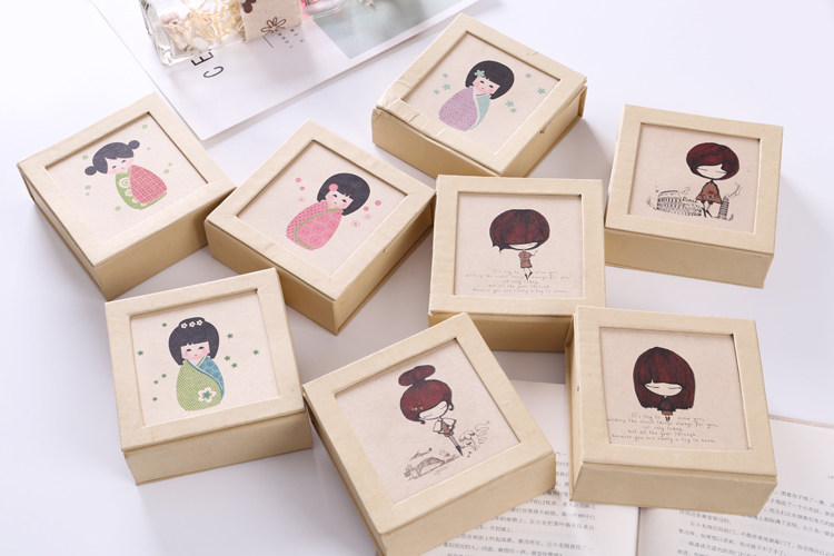 High-end office stationery Japanese cartoon wooden sticky note box message memo kraft paper can stand up sticky notes 150 pieces