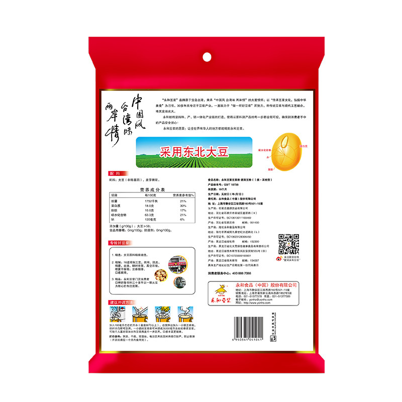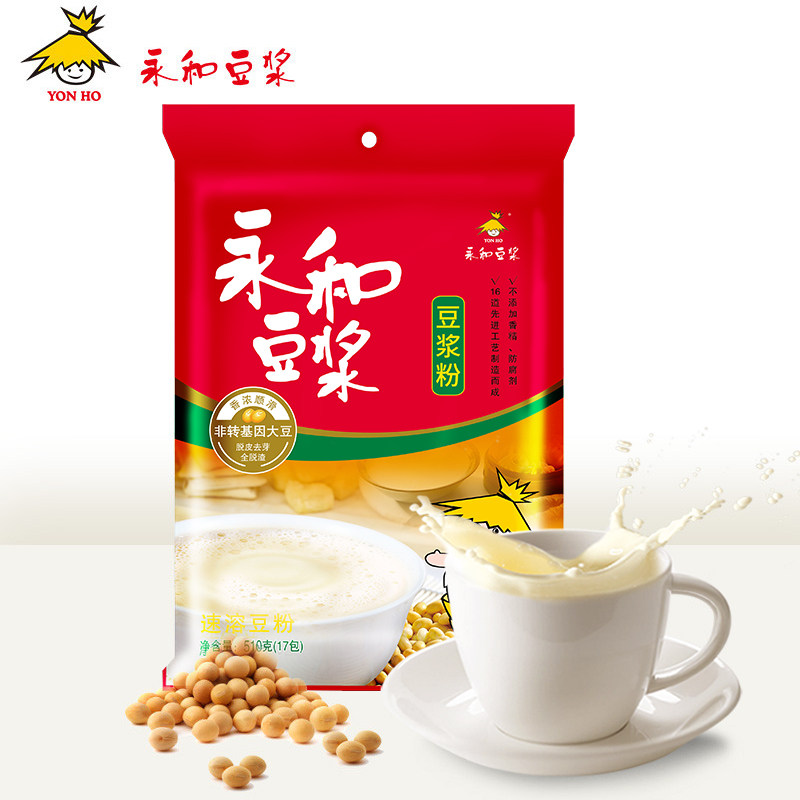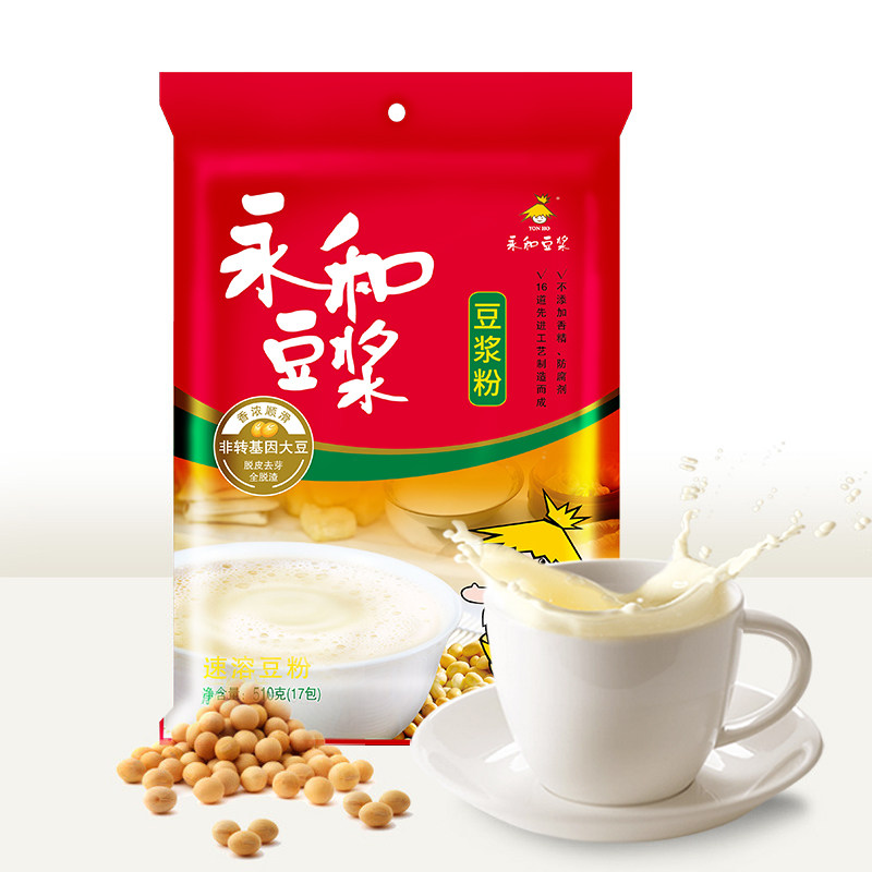 Yonghe Soymilk 510g Low-sweet original Soymilk powder Plant Protein Soymilk Powder Soymilk powder 17 small packages Instant breakfast