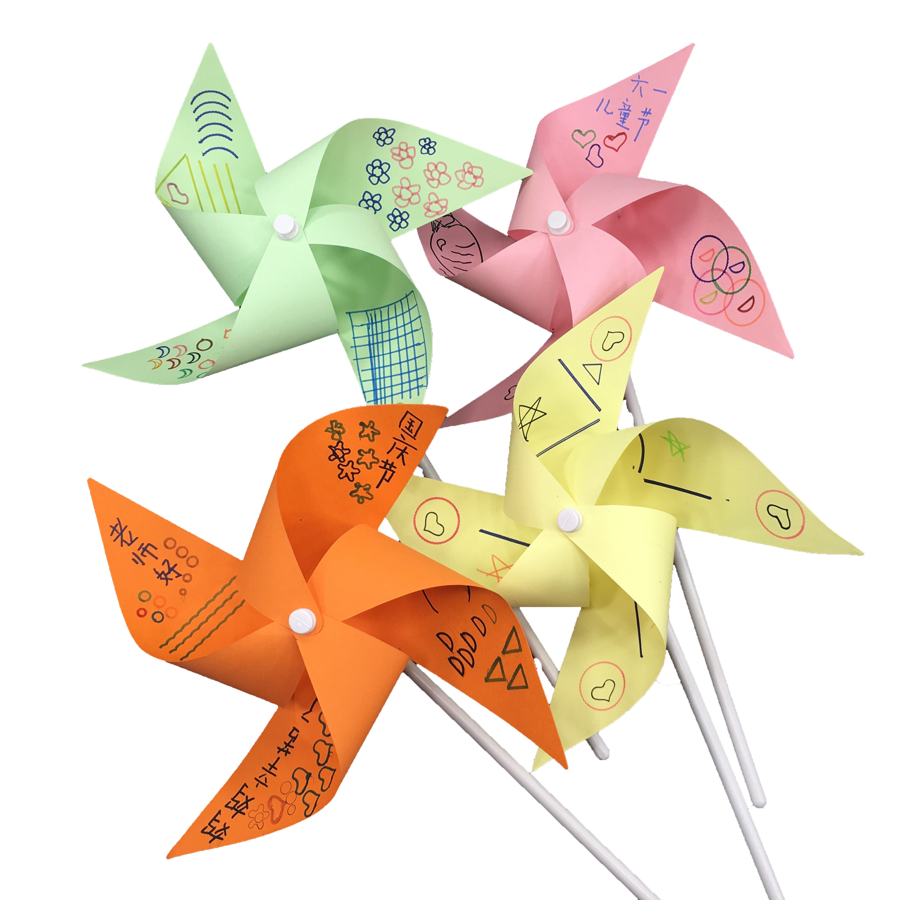 Handmade diy small windmill Paper art Origami windmill graffiti Kindergarten fun making windmill children's toys