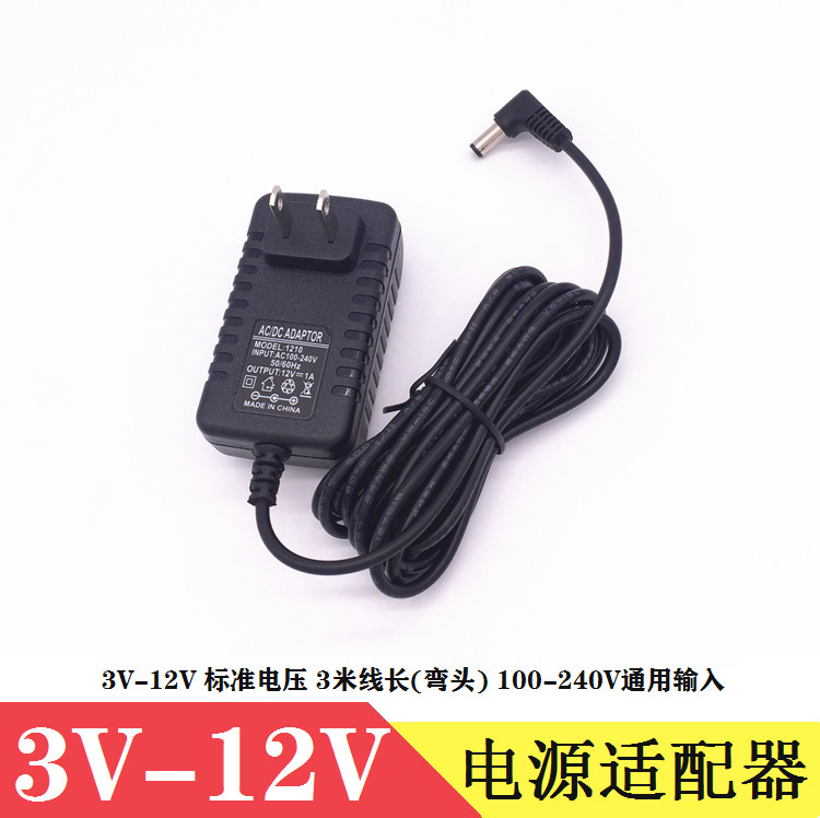 DC elbow lengthened three-meter line 3V1A 5V1 5A 6V 9V1A 10V 12V2A switching power adapter