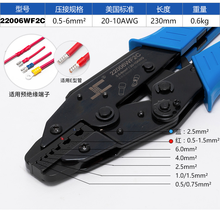 9 inch E-tube needle-shaped tube-type terminal crimping pliers Cold-pressed terminal crimping pliers Crimping tools E-pliers