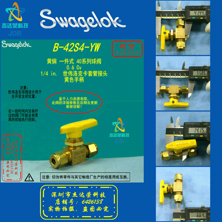 (B-42S4-YW)Swagelok Brass Series 40 Ball Valve 1 4 in Tubing