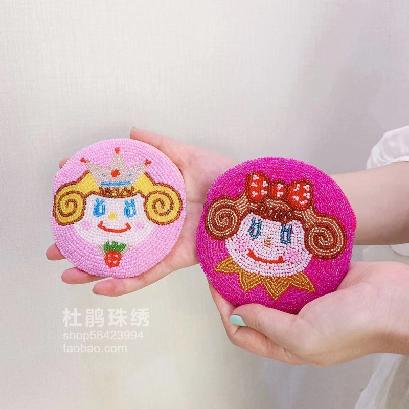 Azalea bead embroidery new product creative handmade Japanese curly hair girl ugly doll round card bag beaded small coin purse