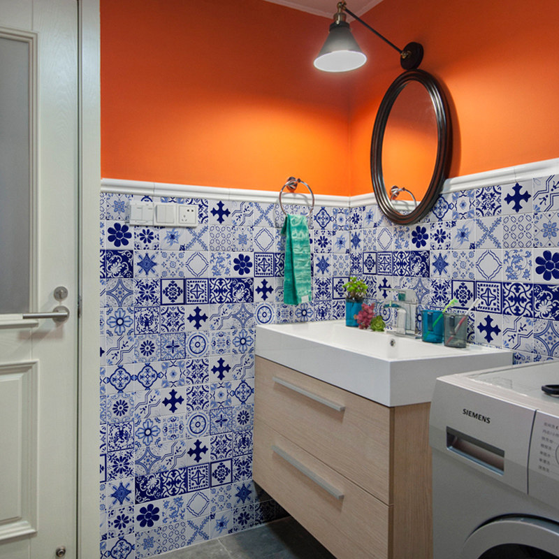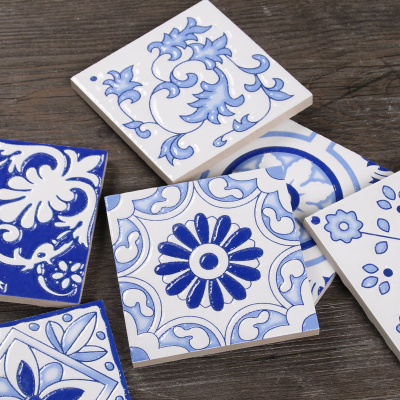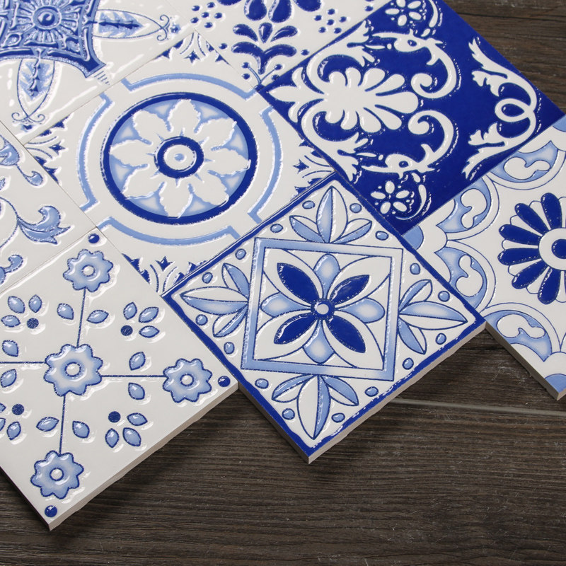 Retro blue and white porcelain art parquet tile blue staircase waistline hand-painted kitchen small flower tile balcony 300×300