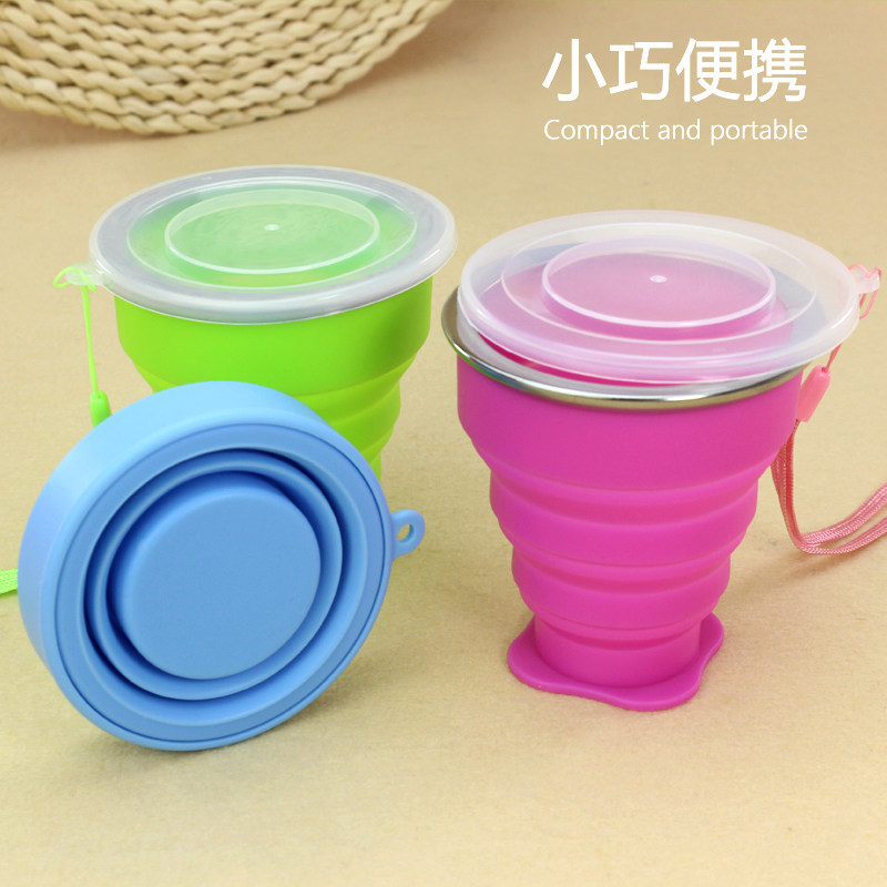 Travel portable creative mini-folding cup silicone scaling cup with cover outdoor travel wash water cup