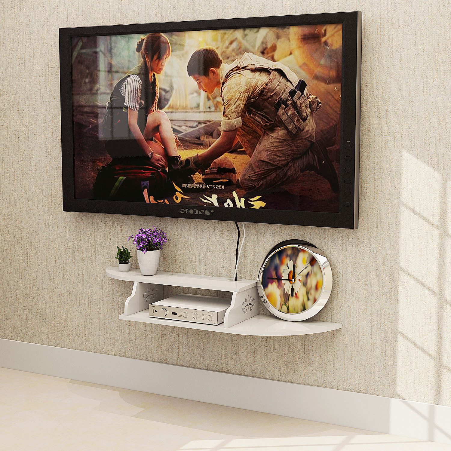 Set-top box rack wall hanging free punching living room partition bedroom router storage box