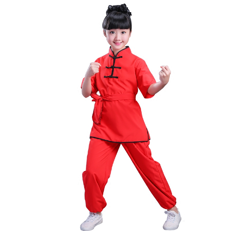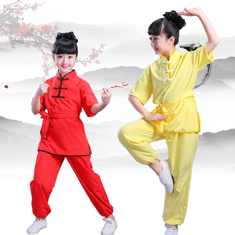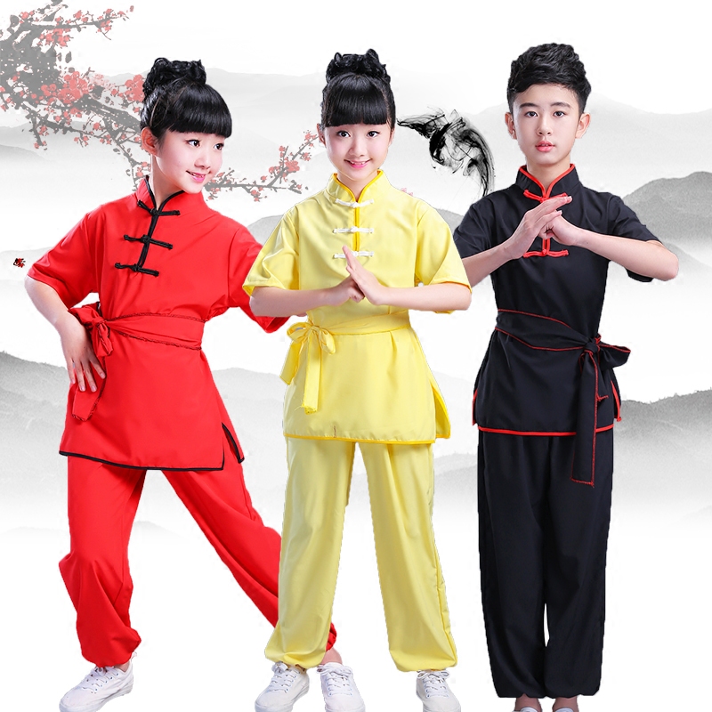 Children's martial arts clothes men and women short sleeve young children kung fu suits martial arts students perform Tai Chi service summer