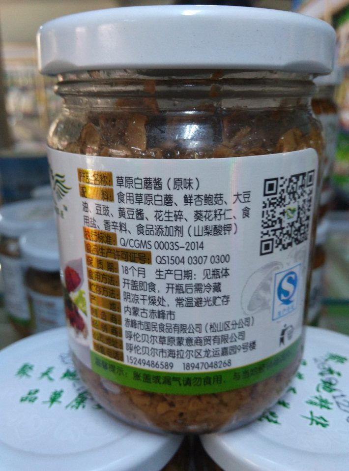 6 bottles of Inner Mongolia Huilunbuir specialty Chi Cheng grassland white mushroom sauce mushroom sauce 180g manufacturer
