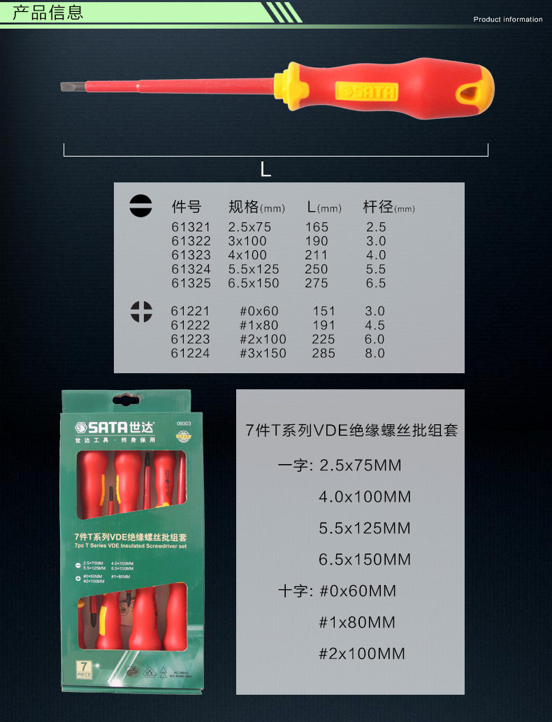Shida Insulated screwdriver Tool T Series Cross-shaped insulated screwdriver set 61221 09303