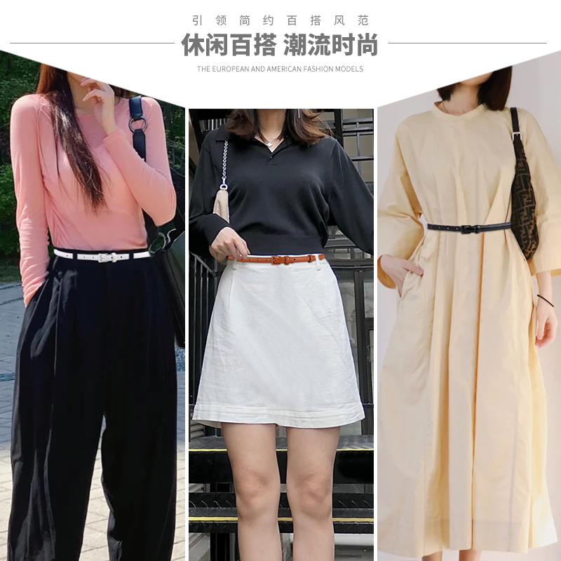 100 Hitch Genuine Leather Slim Belt Fashion Ins accessories Bull Leather Trim Western Dress Pants With Summer Lady Black Leather Strap