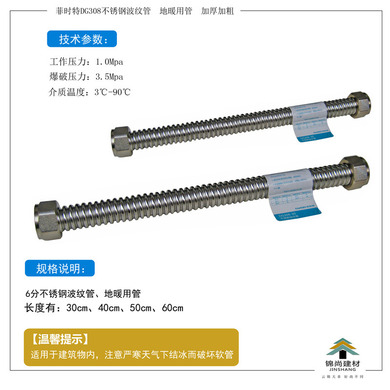 Filette DG308 stainless steel bellows 60% floor heating tube boiler tube 6 points thickened with coarse water pipe