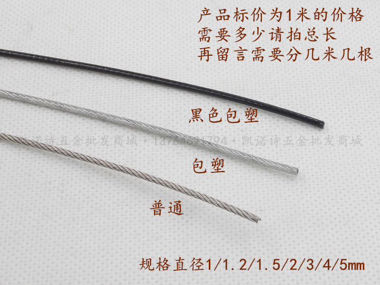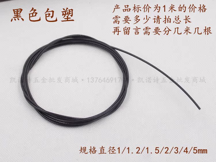 304 stainless steel wire rope clothesline window lanyard 7*7 plastic-coated plastic black balcony wire rope 1-5mm