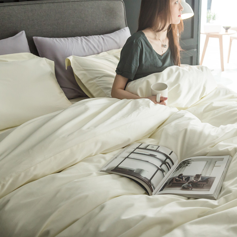100 cotton four-piece set satin plush cotton Solid color simple cotton quilt bed Single bed Li bedding