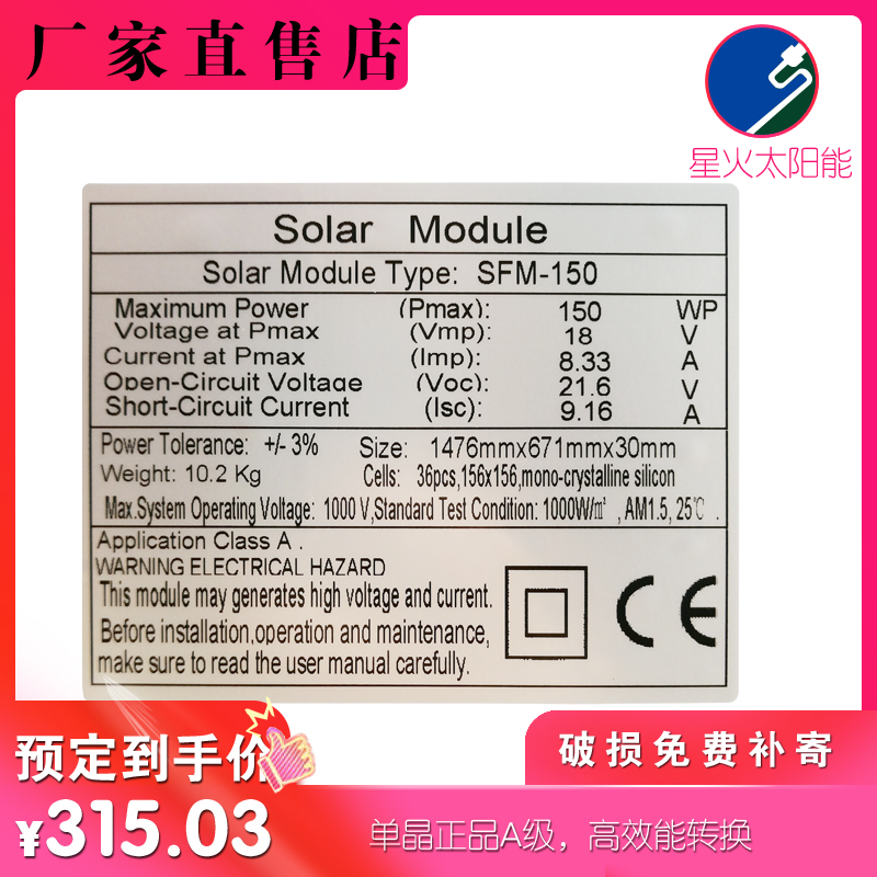 New full power Class A monocrystalline 150w solar panel 150W solar panel 12V photovoltaic panel