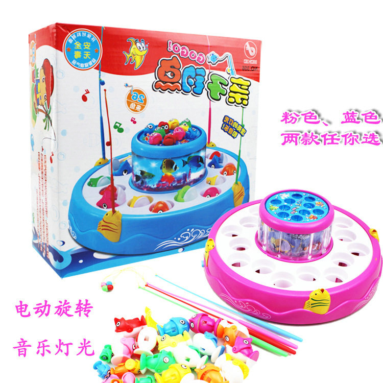 Children's electric double-layer fishing reel electric parent-child fishing rotating fishing reel electric music light fishing toys - Taobao