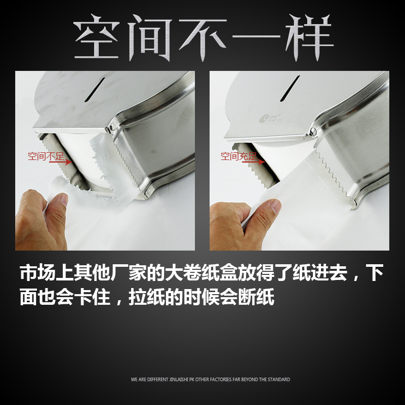 Stainless steel large roll paper box wall-mounted free-to-punch hotel public toilet makeup room large-cap paper towel rack toilet paper rack