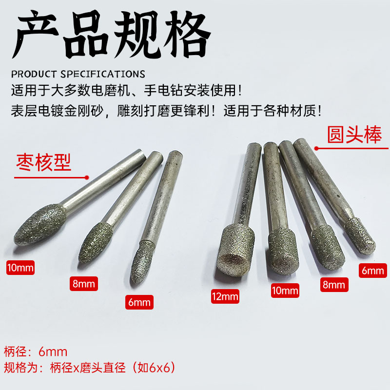 Electroplating emery lettering grinding head jujube core type grinding rod granite marble tombstone carving grinding head round head rod
