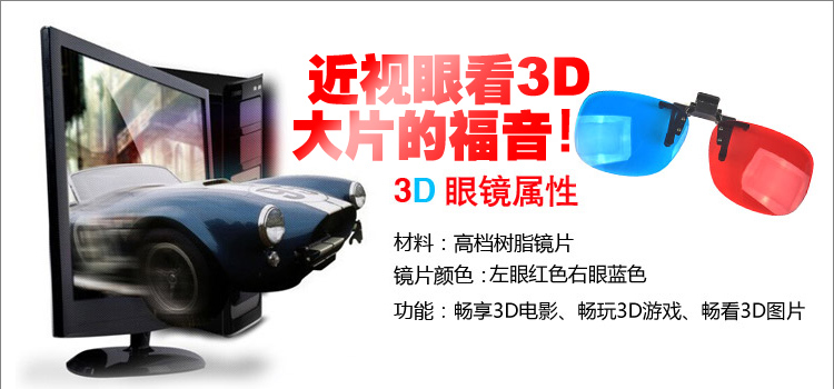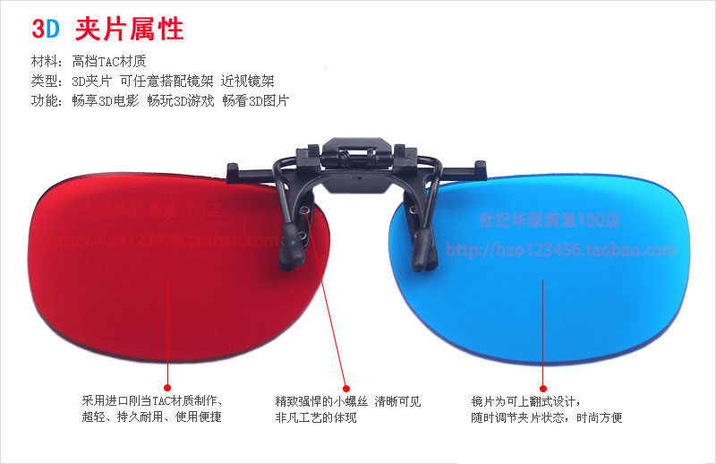 Storm AV computer TV dedicated 3D clip lens glasses myopia 3d eyes HD red blue left and right 3d glasses clip