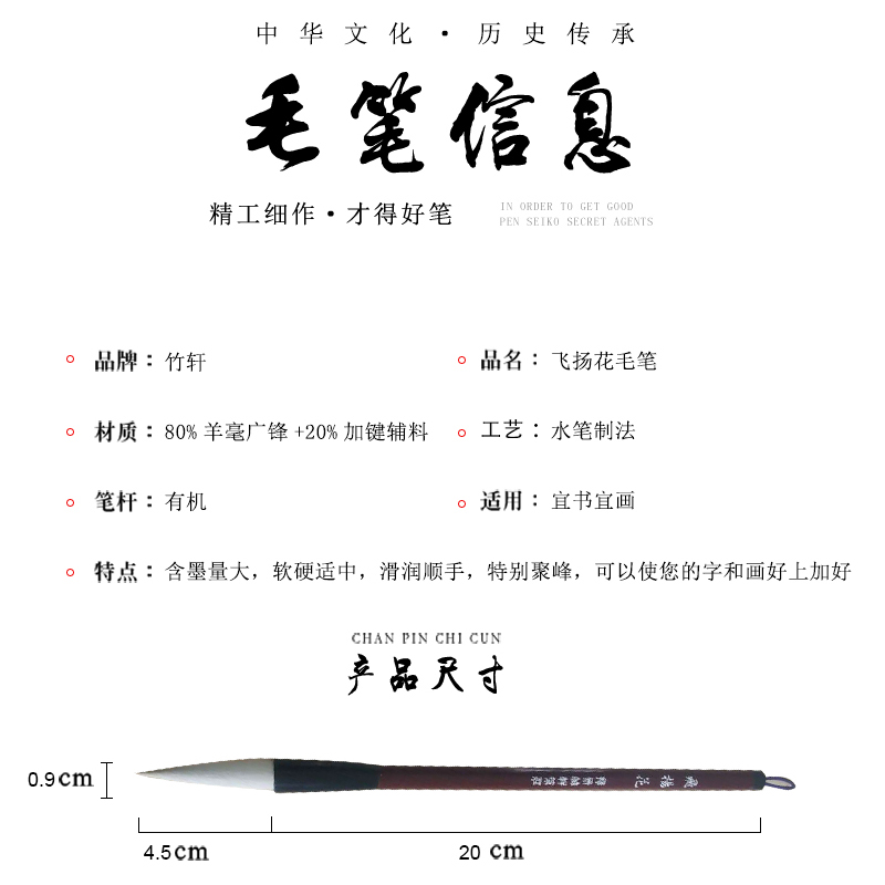 Zhuxuan pen Zhuangshu brush sheep hair wolf hair medium regular and hair brush regular script official script seal script study four treasures flying flowers