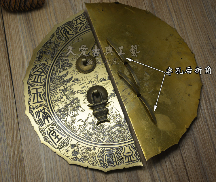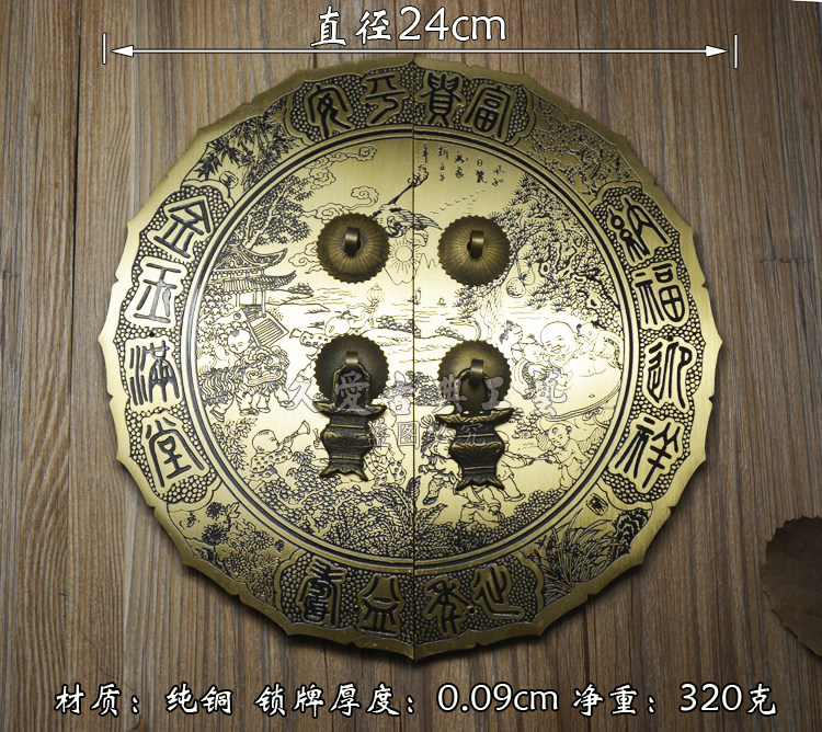 Chinese imitation ancient Ming and Qing furniture accessories pure copper cabinet door overall cabinet handle round door plate wardrobe bookcase copper handle