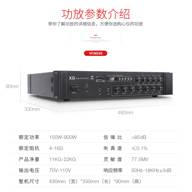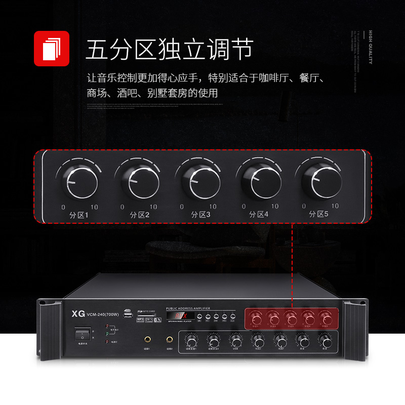 Xiangge vcm240 high-power constant-voltage amplifier Partition amplifier Background music amplifier Public broadcasting system Ceiling sound professional post-stage air amplifier New combined industrial expansion public amplifier