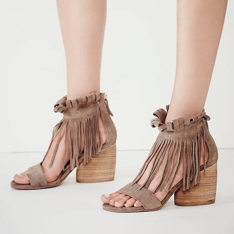 36 off-code 4-fold Matiko Bohemian suede rough and high wood heel Ruenail necklace flow Sufoot ring female sandal