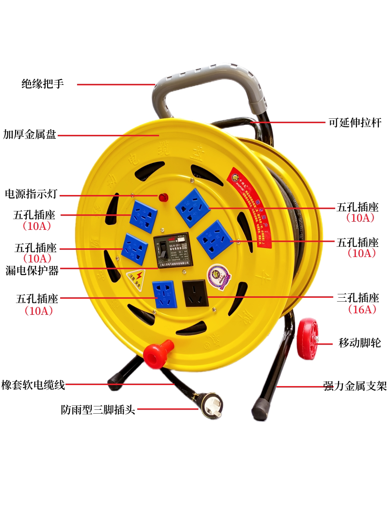 220V high-power cable towing reel construction mobile power reel winding reel wiring reel 50 100 meters spool