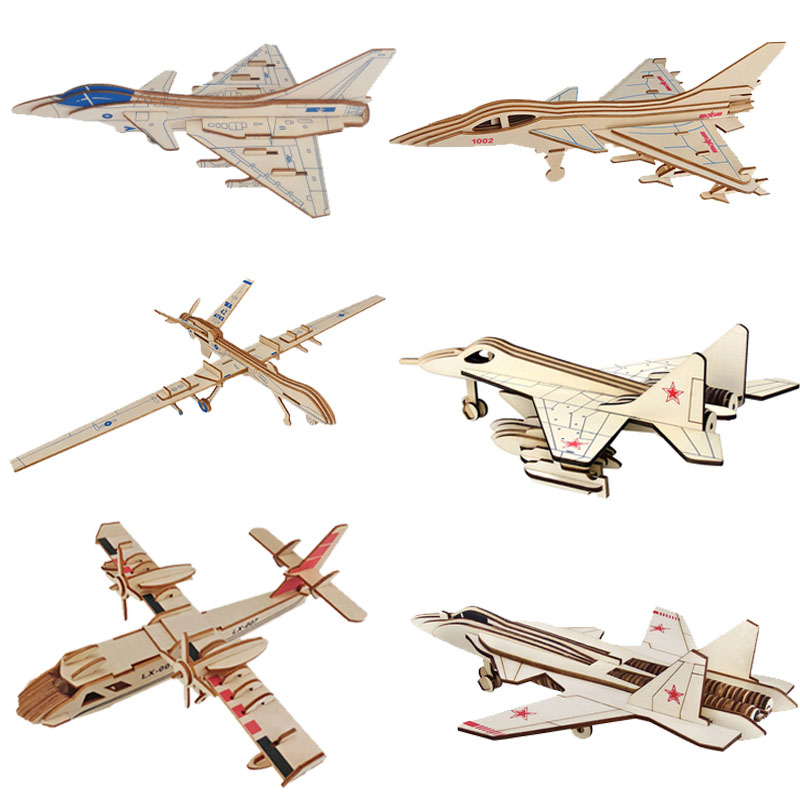 Children's wooden 3D three-dimensional puzzle toy boy handmade aircraft assembly model military fighter transport aircraft - Taobao