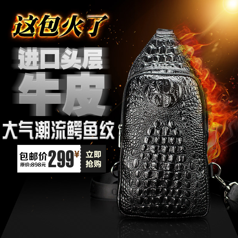 European and American fashion men's chest bag genuine leather IPAD backpack high-grade crocodile pattern top layer cowhide chest bag one-shoulder Messenger bag