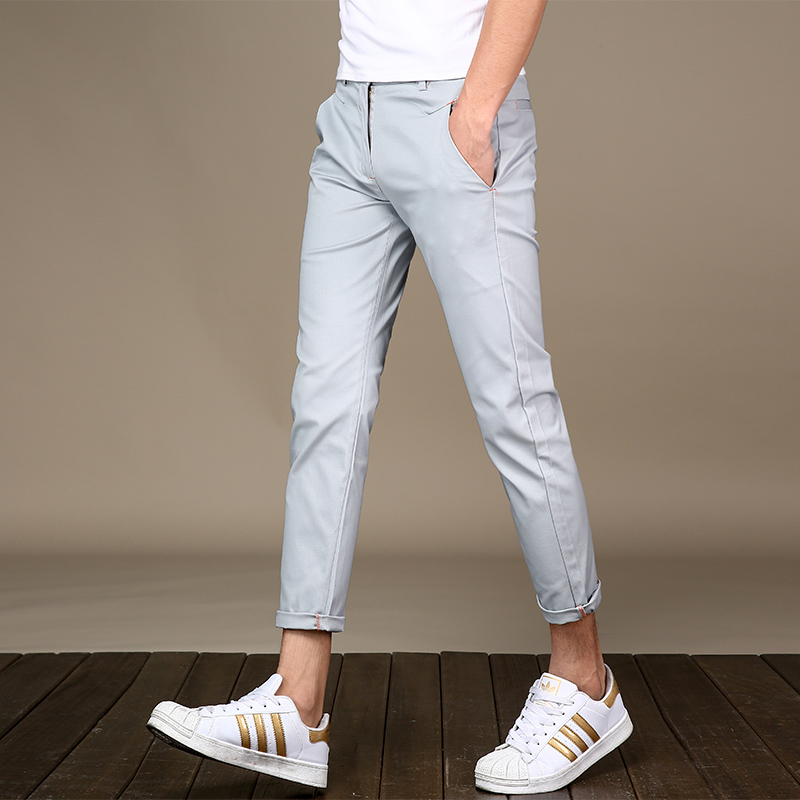 White Casual Pants Men 90% Pants Minor Feet Men White Pants College Students Elastic 9 Pants Summer Tide Man