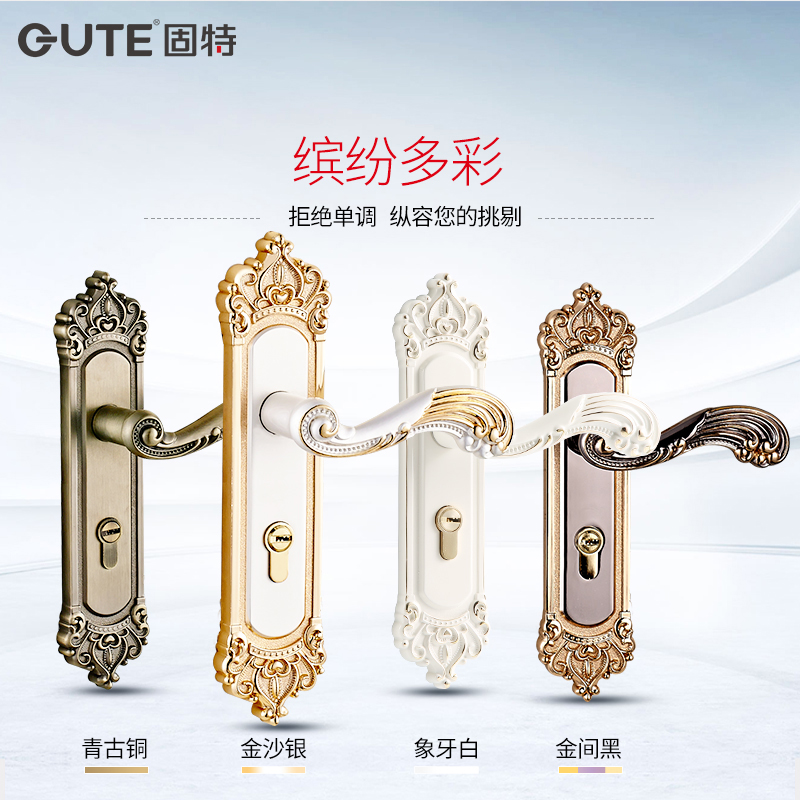 Solid door lock Indoor European style bedroom Makeup Room Handle Solid Wood Home Universal Lock Three Sets